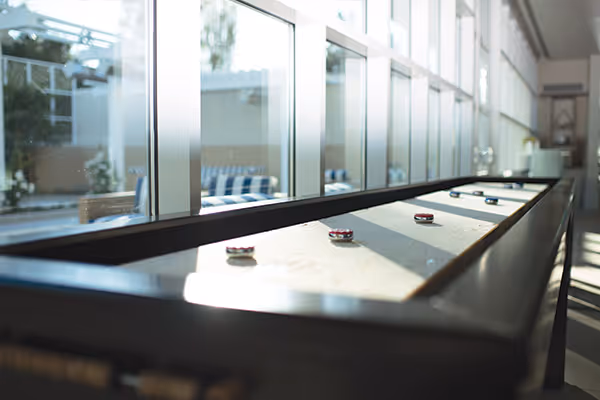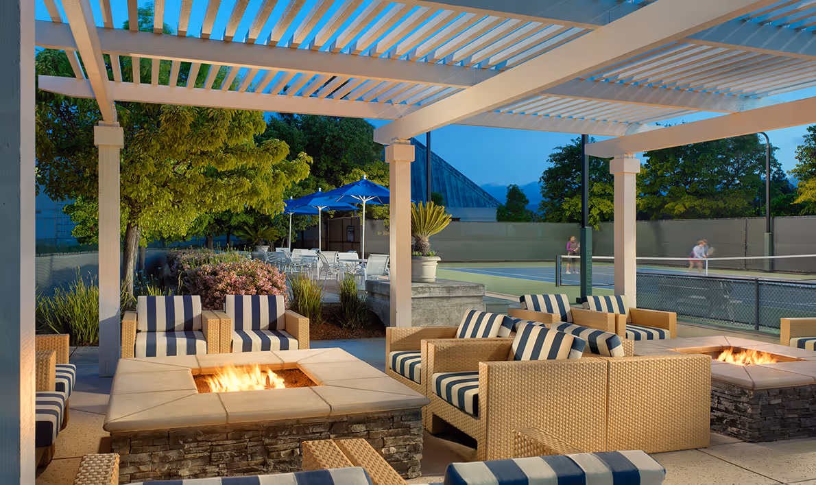 A resort-style Club with 10 acres, on the Peninsula, Redwood Shores draws attention for reasons beyond its four glistening outdoor pools. One fully-equipped conference room with executive table and chairs for up to 20 people. And our Seventy-Seven Lounge is perfectly designed for an evening of stylish, casual fun, complete with fire pits, two bocce courts, and shuffleboard. You can watch your favorite sports teams on the flat-screen TVs, or host a corporate happy hour or holiday party.