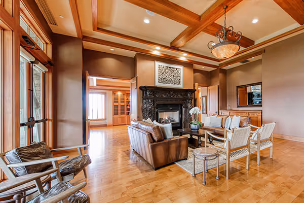 - Indoor event spaces with fireplaces